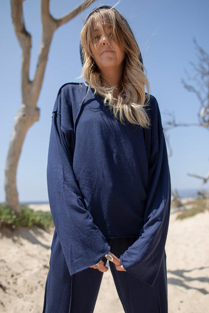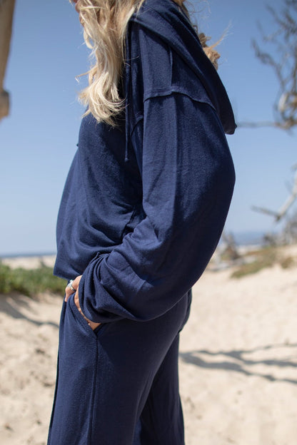 Go everywhere or nowhere in our always comfy hoodie and joggers, detailed with exposed stitching, raw hems and a loose yet flattering shape.