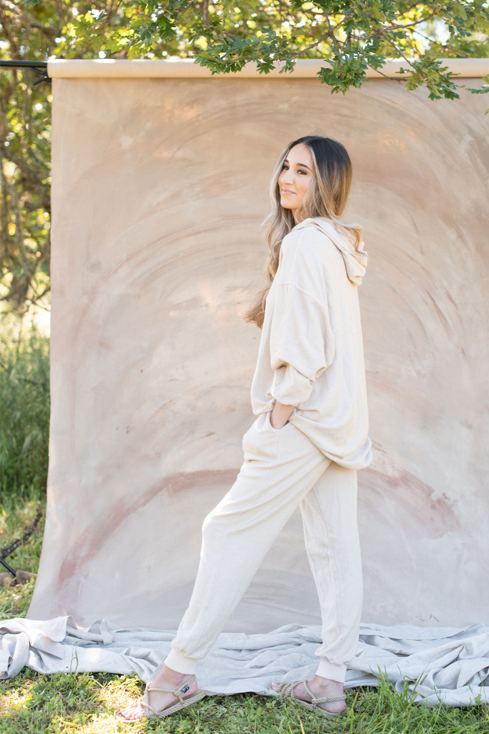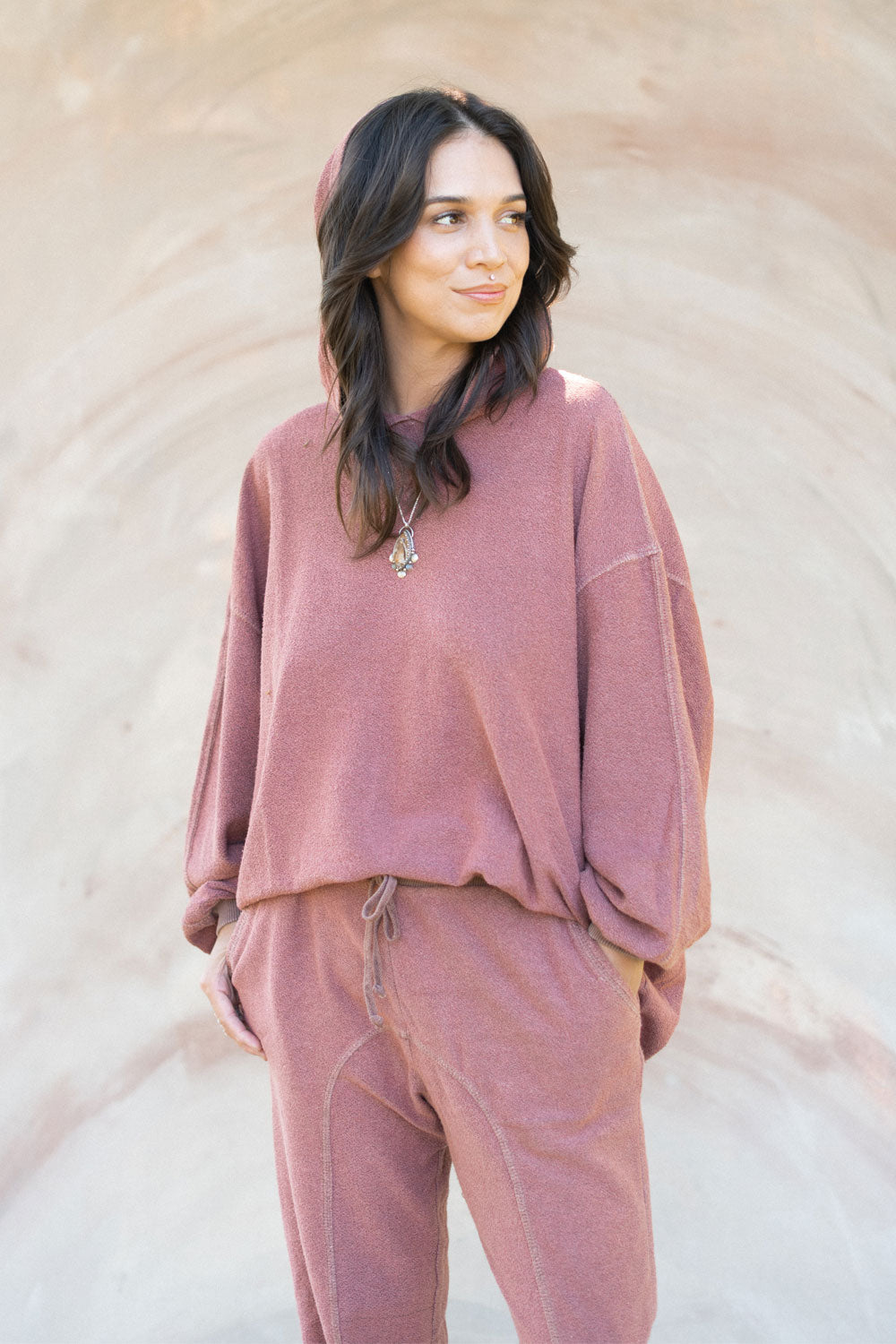 Relaxed and yet very cool, classically oversized perfection. Throw on with the matching 90's Classic Joggers or 90's , or under a leather jacket for a cozy night out.+ Rose / Ivory / Vintage Black