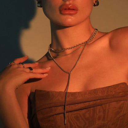 Our Thin Luciana Box Chain Lariat (or Y Necklace) is made from our Venetian box chain.