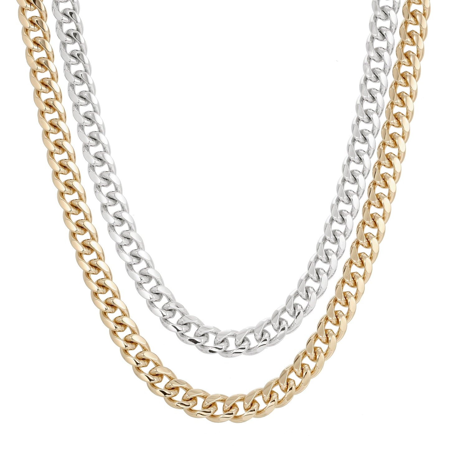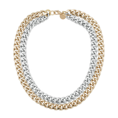 Our two-toned double curb chain necklace is made from our rounded curb chain. Its the perfect finishing touch to your look.