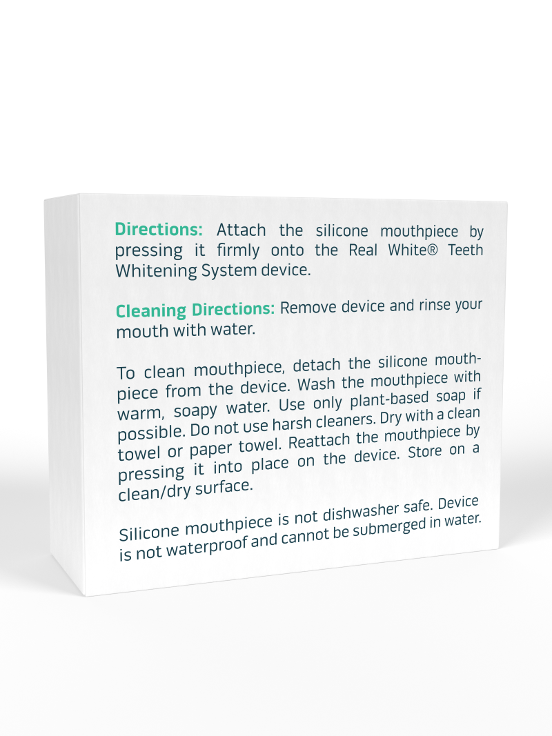 Contains two extra or replacement silicone mouth guards for the V4 Real White Teeth Whitener.