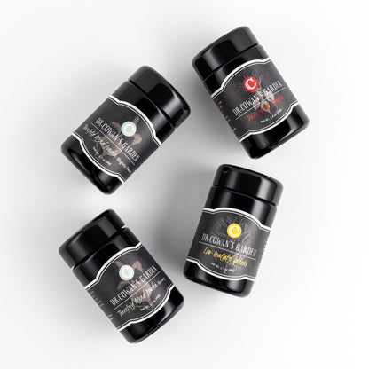 Introducing our Vegetable Powders Starter Kit from Dr. Cowan’s Garden, featuring four 100 ml Miron violet glass jars of some of our most popular beyond organic vegetable powders: Low-Oxalate Greens, Three-Beet, Threefold Blend Savory and Threefold Blend Slightly Sweet.