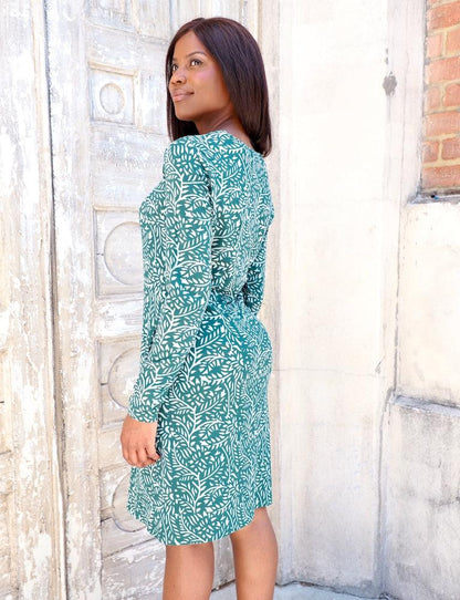 You guessed it: our Vineyard green dress will look great among the grapevines under the Mediterranean sun. Or just at home with a glass of wine and great company. Either way, with its unique neckline, tailored darts, and long sleeves, you’ll look incredible. Plus it’s made with soft and luxurious modal fabric, so you’ll never want to take it off.