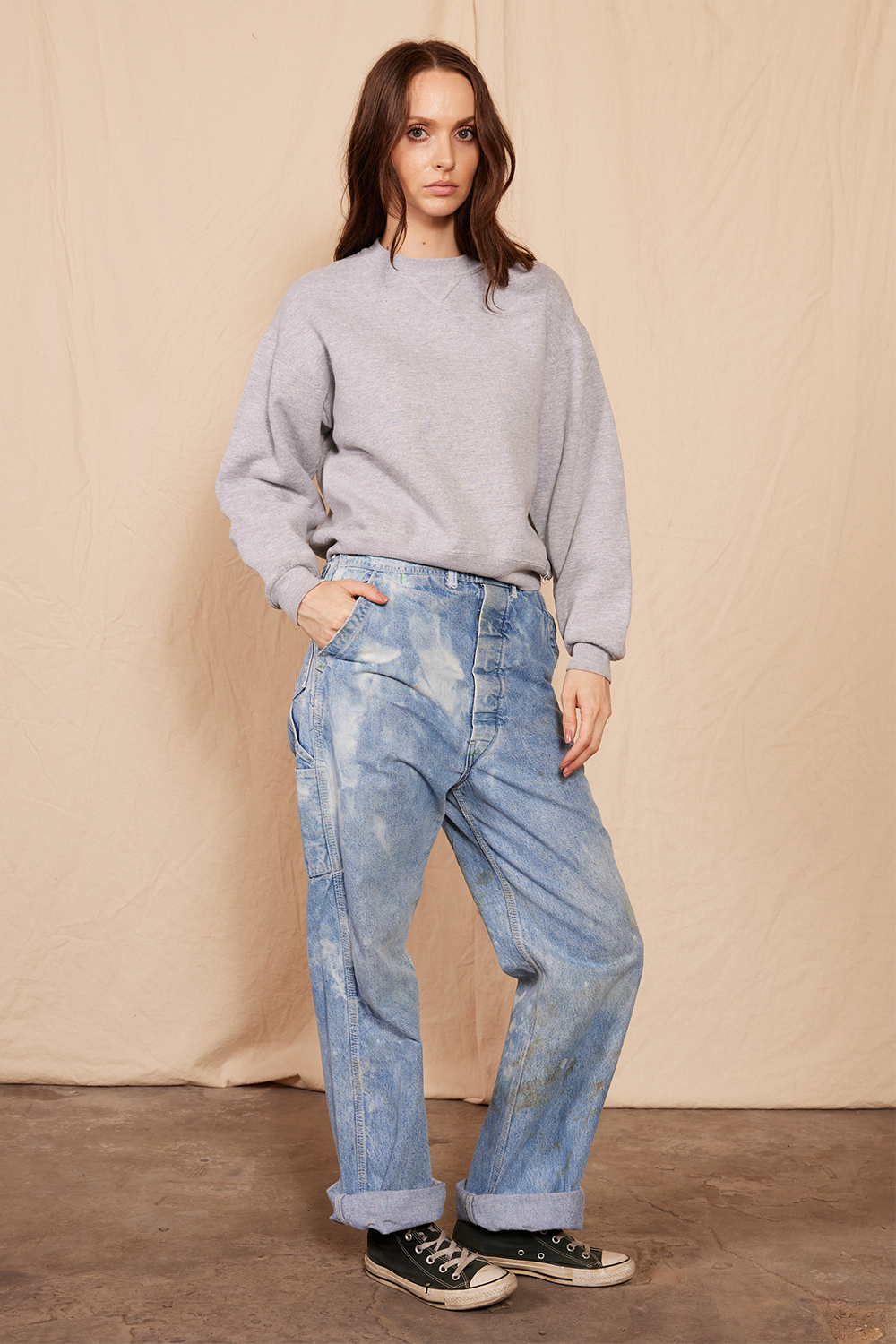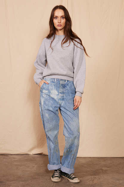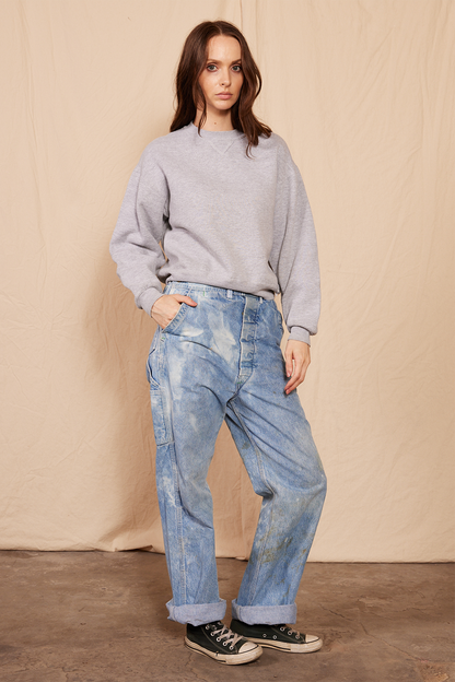 A classic look. Our Vintage Heather Gray Crewneck Sweatshirt is the perfect wardrobe staple. Sized as a youth large, it has a flattering slightly cropped fit. Rock it with a pair of vintage workwear pants for a truly retro look, or keep it casual with sweats. Shows light signs of wear, but is in great overall condition. See photos for details.