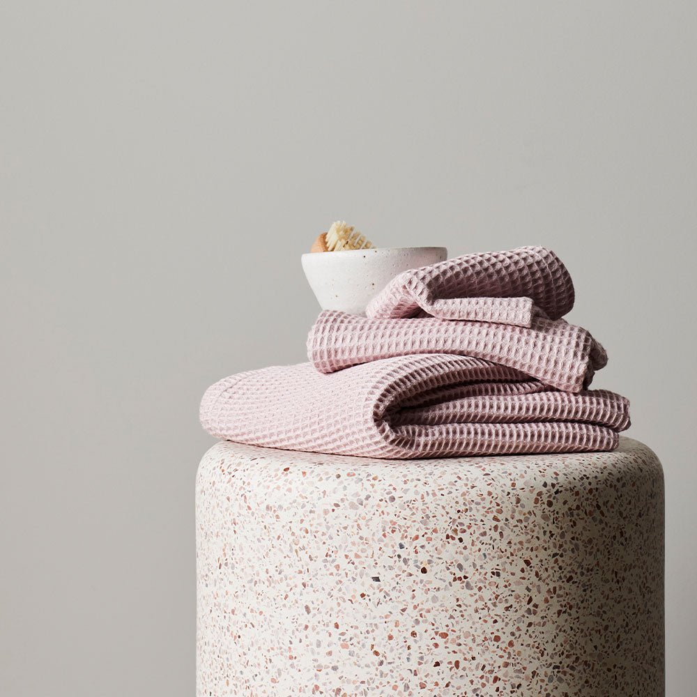 - Select your preferred waffle towel size(s) or choose the Towel Set (includes one bath towel, one hand towel and one washcloth)