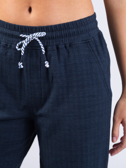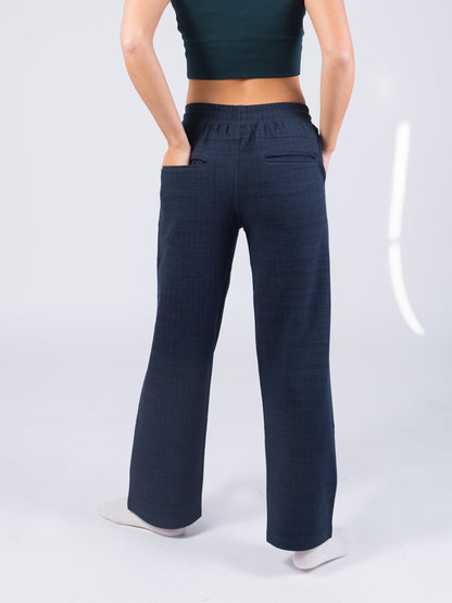 Woven from blue and black threads in a textured, wavy pattern that evokes the mysteries and movement of the ocean. Named for the deep sea, an ocean depth where light begins to fade but marine life thrives.