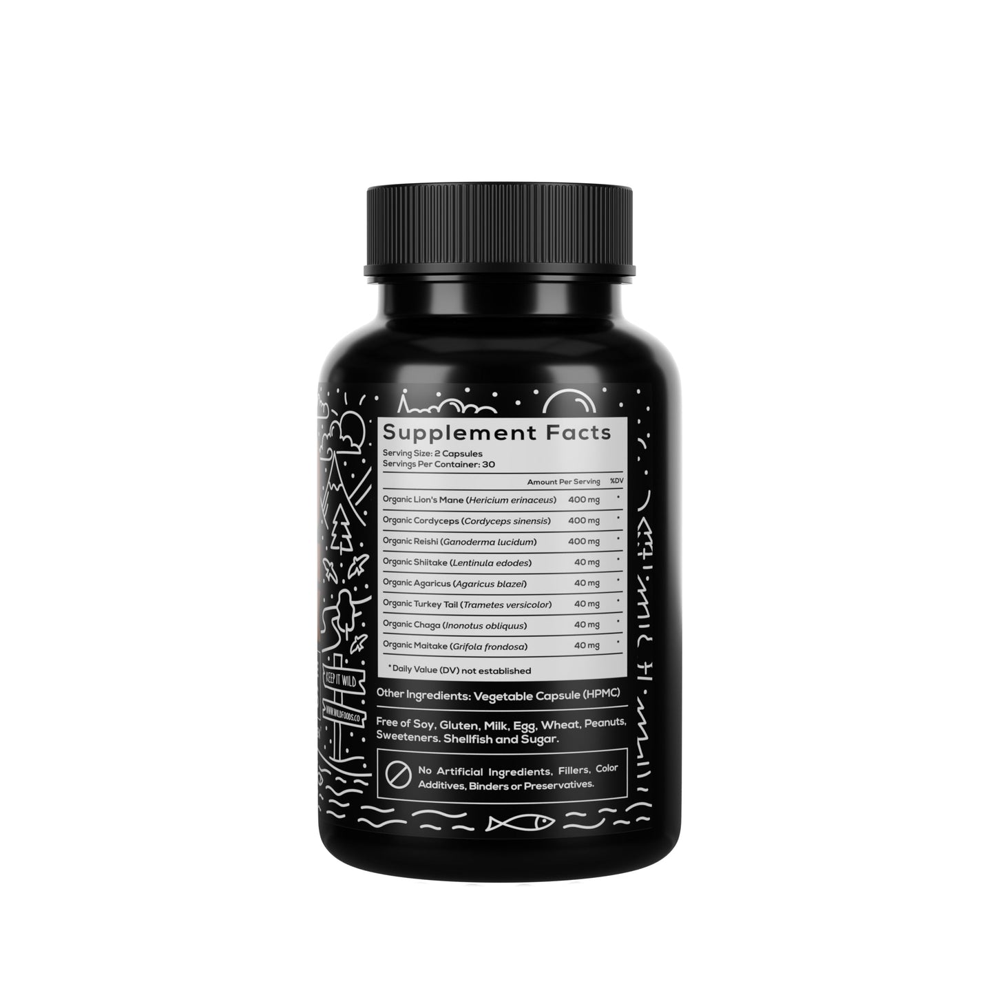 IMMUNE SUPPORT & NOOTROPIC BENEFITS: 400mg Lion's Mane supports enhanced mental clarity, focus, and cognitive function. 400mg Cordyceps + 400mg Reishi supports boosted energy, stamina, and performance. 200mg blend of Turkey Tail, Shiitake, Agaricus, Chaga, and Maitake mushrooms promote immune support and overall wellness while defending against oxidative stress.