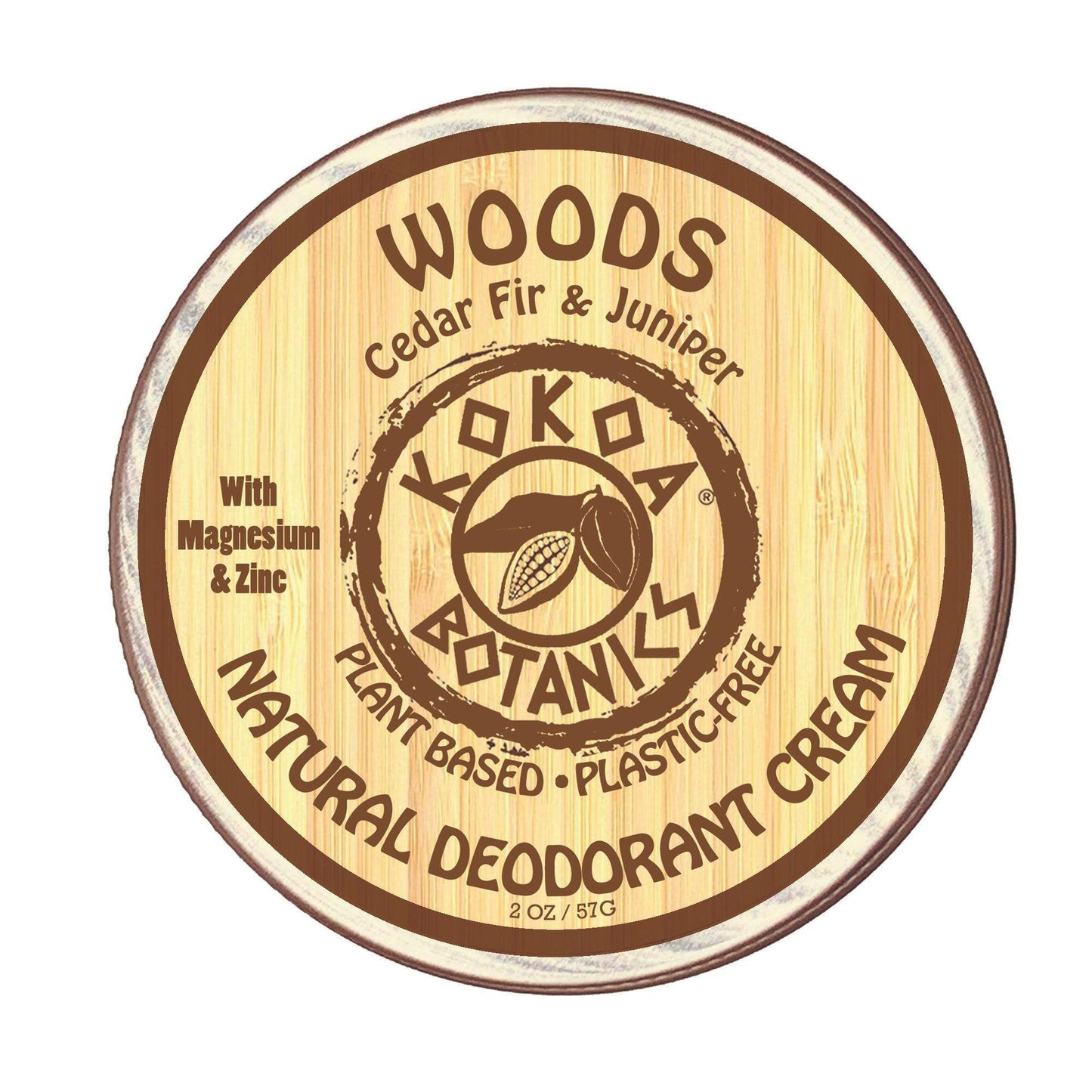 Ingredients: Cocos nucifera (Coconut) Oil, Maranta arundinacea (Arrow Root) Powder, Butyrospermum parkii (Shea) Butter, Magnesium Hydroxide, Oryza sativa (Rice Bran) Wax, Fractionated Coconut Oil, Baking Soda, Euphorbia antisyphilitica (Candelilla) Wax, Bambusoideae (Bamboo) Extract, Zinc Oxide, Theobroma Cocoa (Cocoa) Butter, Essential Oils of Ashe Juniper (Cedar), Juniperus communis (Juniper), Citrus bergamia (Bergamot), Abies alba (Fir), Vetiveria Zizanoides (Vetiver).
