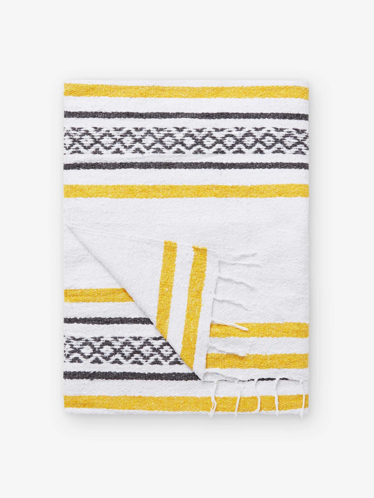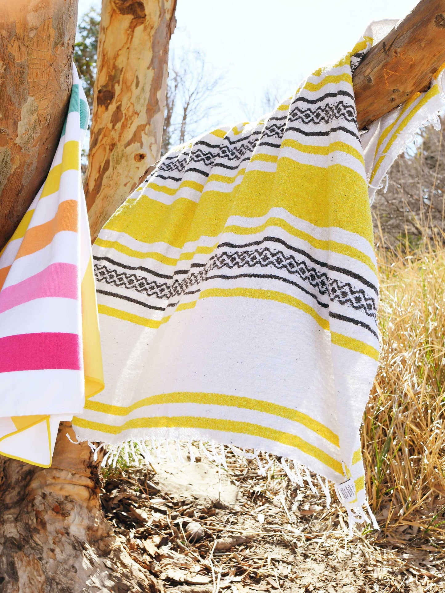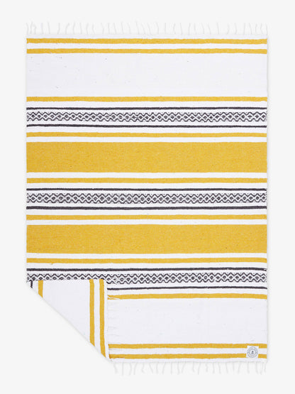 The most versatile accessory you will ever own. Our soft and durable Mexican blankets are perfect to take everywhere—whether it's the beach, park, or yoga. Handwoven by a small family of craftsmen in Tlaxcala, Mexico, and designed with a classic California style, this will be your new favorite blanket. Use this multipurpose blanket for added color and comfort in your home—a fresh layer to your sofa, bed or kitchen bench.